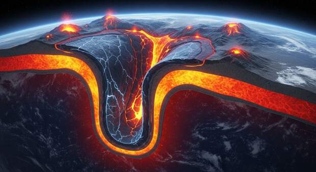 Для начала давайте освежим в памяти, как устроена наша планета. Внешняя её оболочка, литосфера, не цельная, а разбита на огромные плиты, которые медленно, но верно дрейфуют по более горячей и пластичной мантии. Иногда эти плиты сталкиваются. Когда тяжёлая океаническая плита встречается с более лёгкой континентальной, она начинает погружаться под неё — этот процесс называется субдукцией.