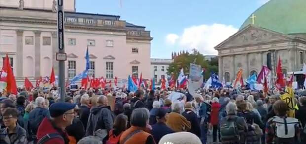 В столице Германии проходит протест против вступления Германии в конфликт и конфронтацию с РФ. Акцию проводят в день германского единства под девизом «Войны - больше никогда».