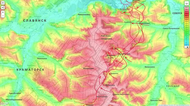 Кроме того, по словам обозревателя, российские силы продвигаются вдоль канала Северский Донец — Донбасс, пытаясь толкать фронт к Малиновке. В его интерпретации это движение имеет не локальный, а оперативный смысл: выход через данный рубеж способен приблизить начало полномасштабного сражения за Славянск и Краматорск.