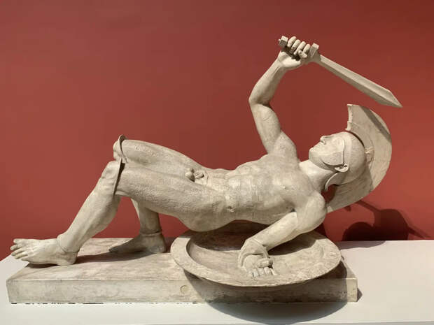 Сраженный воин с восточного фронтона этого же храма. Дар К.Т. Солдатенкова, 1893 г. Подлинник: около 500-490 до н.э.; мрамор; хранятся в Глиптотеке, Мюнхен