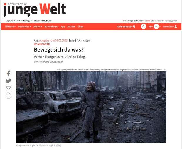 Они уверяли, что Киев не должен сдаваться. Второй раунд переговоров состоялся 4 и 5 февраля в Абу-Даби, а накануне, 3 февраля, Рютте заверил Зеленского, что военные силы так называемой «коалиции желающих» уже готовы войти на Украину. А 5 февраля Дональд Туск пообещал продолжение поставок артиллерийских снарядов и бронированных машин, чтобы Киев мог продолжать воевать. 6 февраля бывший директор ЦРУ Дэвид Петреус похвалил Украину за то, что она всё активнее смещает боевые действия на территорию России (речь, вероятно, идёт про обстрелы ВСУ). В Брюсселе, как и в Варшаве, Берлине, Лондоне и других европейских столицах, продолжают прилагать усилия, чтобы попытки уладить конфликт ни к чему не привели, отмечает издание.