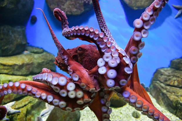 Отдельное внимание мы уделяем российской ихтиофауне. У нас есть осетровые, а также экспозиции с обитателями Белого, Чёрного, Японского морей, а также такие яркие представители отечественной фауны, как гигантские осьминоги Дофлейна и камчатский краб. Есть и тропические зоны с медузами, коралловыми рифами и мангровыми лесами.