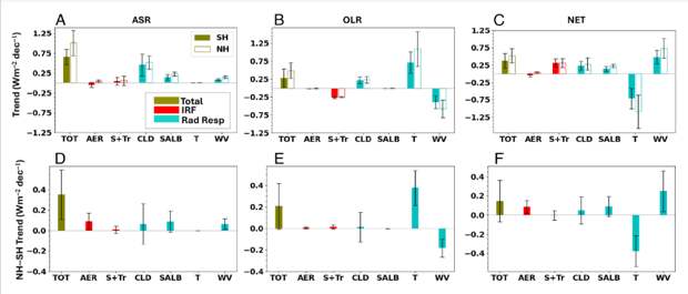 Здесь начинается самое неожиданное. Анализ показал, что облака — главная причина увеличения поглощения тепла в каждом полушарии отдельно. Их свойства меняются, и они отражают меньше света.