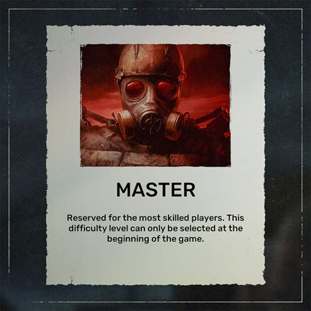 L.K.E.R. 2: Heart of Chornobyl появится четвёртый уровень сложности вдобавок к «Новичку», «Сталкеру» и «Ветерану» — новая опция называется «Мастер».«Мастер» рассчитан на наиболее умелых игроков. Выбрать режим можно только перед началом прохождения. На этом уровне сложности ресурсов ещё меньше, предметы ещё более хрупкие, а торговля не такая экономически выгодная.