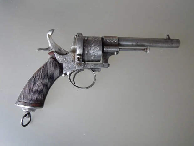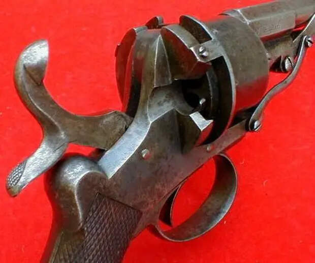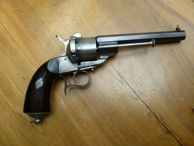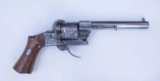 Лефоше выпускал поразительно много различного вида револьверов калибра 7-мм… Вот револьвер двойного действия