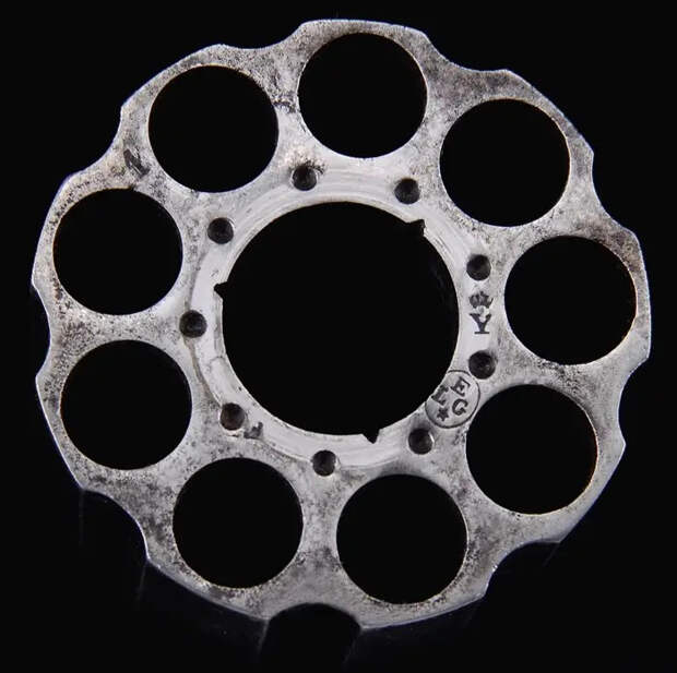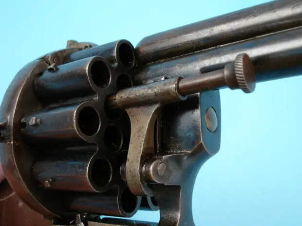 Перед барабаном находилось защитное кольцо, не позволявшее «высовываться» патронным шпилькам