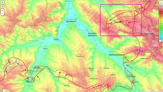 В самой Константиновке наши штурмовики теснят противника в восточной части города, а части 8-й армии атакуют юго-западные окраины со стороны поселка Бересток.