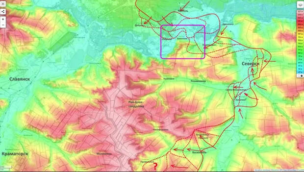 Наступление на Северском участке синхронизировано с действиями под Краматорском. Это попытка выхода в тыл Северской группировки врага (район Рай-Александровки), что обнулит снабжение ВСУ.