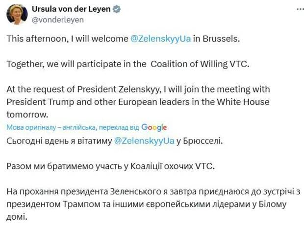 В преддверии встречи Владимира Зеленского с главой Белого дома Дональдом Трампом в Вашингтоне в ЕС появилось беспокойство, что радушное отношение американского лидера к российскому коллеге Владимиру Путину может не распространиться на Зеленского. В связи с этим Европа направляет «мощных» игроков для поддержки Украины и обеспечения включения европейской стороны в дальнейшие переговоры.