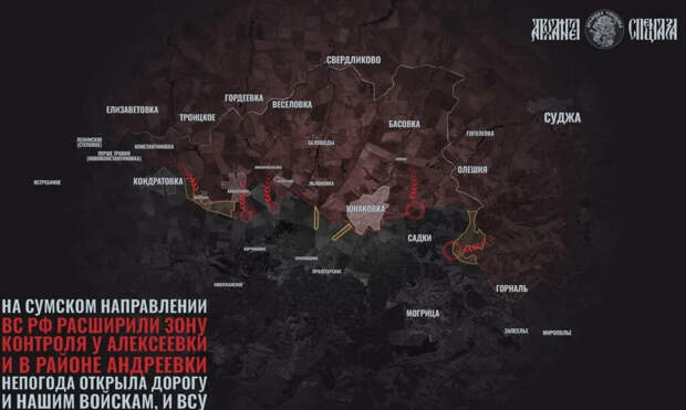 Еще более масштабные события разворачиваются в Сумском приграничье. Российский плацдарм здесь расширен на 900 метров по фронту. Штурмовые группы продвигаются на восток и запад от линии Комаровка — Белая Берёза.