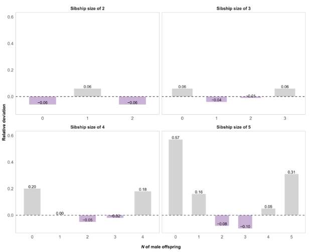 Получается, что более высокая вероятность иметь детей одного пола у старших матерей может быть не следствием биологии, а отражением их решения прекратить попытки завести ещё одного ребёнка после двух (или более) однополых детей.
