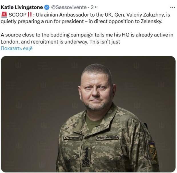 Бывший главком ВСУ, сосланный послом Украины в Великобритании, Валерий Залужный открыл предвыборный штаб в Лондоне и начал тайно готовиться к президентским выборам.