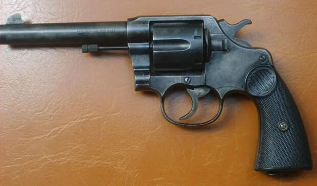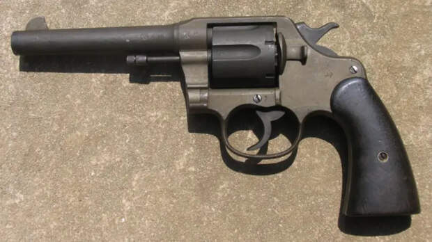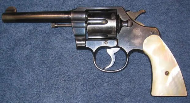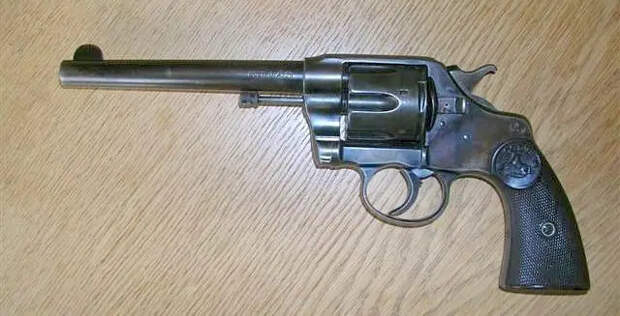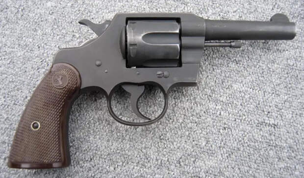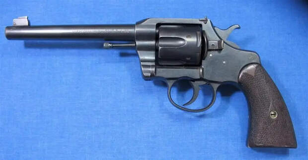 Револьвер «Кольт Новый армейский и морской» («New Army and Navy»), калибр .38 Colt, ствол 152 мм, образца 1904 года. «Офицерская модель» имела регулируемый задний прицел
