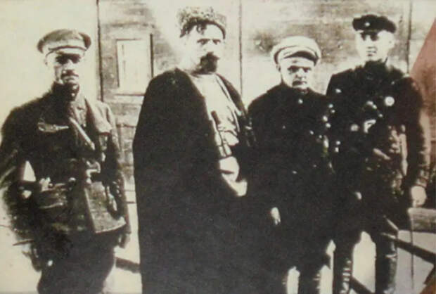 Никифор Григорьев, Павел Дыбенко, Станислав Косиор и неизвестный