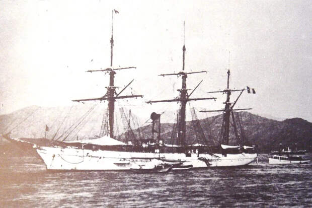 Винтовой корвет «Янълу» (иногда пишут «Янву») и канонерка «Фусин» перед битвой при Фучжоу