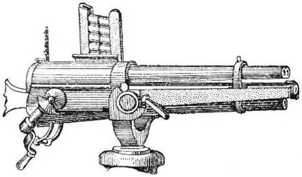 Сухопутная французская митральеза описываемого времени — сложно сказать, такие же стояли на кораблях или другого типа...