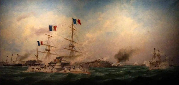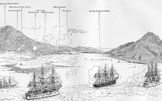 Прокси-война между французами и прокитайскими силами в Кохинхине привела к совершенно обычной войне — между Китаем и Францией напрямую. Правда, перегонять к китайскому побережью слишком большие силы Париж не спешил, считая, что эскадра контр-адмирала Амедея Курбе из четырёх крейсеров, авизо, трёх канонерок и пары миноносок как-нибудь сама управится с Поднебесной. Тем более что силы китайского флота в этих краях представляли из себя устаревшие деревянные корабли местной постройки, которых броненосный крейсер «Триомфан» (иногда его уважительно величают броненосцем 2 ранга) мог в одиночку перетопить, а у Курбе ещё три деревянных крейсера было.