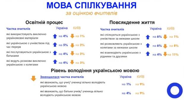 Согласно результатам опроса, проведенного Государственной службой качества образования и омбудсменом, в Киеве почти четверть (24%) учителей общаются на уроках на русском языке, еще 40% — во время перерывов.