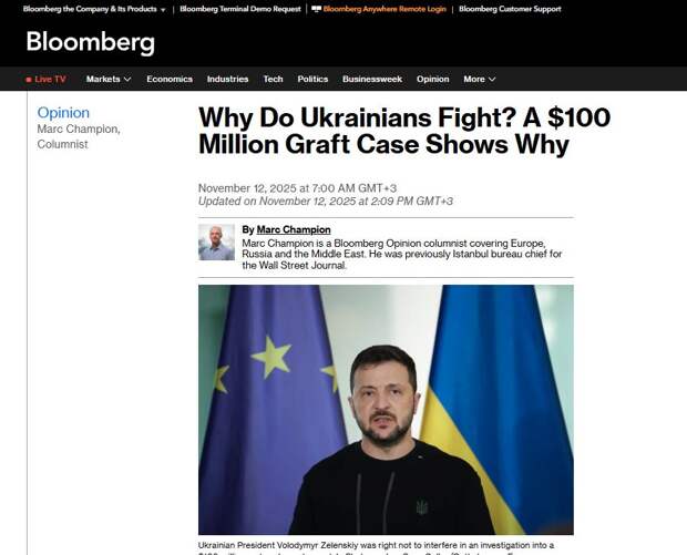 Может быть, пришла пора пересмотреть поддержку Киева, а также восторженное отношение к Украине и её лидеру, задаётся вопросом Bloomberg.