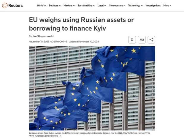 В ходе длительных переговоров, пришли к выводу – существует всего два реальных способа для того, чтобы обеспечить финансирование украинской войны. Во-первых – украсть российские замороженные активы и это самый лучший способ. Второй нравится всем намного меньше – взять кредиты на сумму в 130 – 140 млрд евро, сообщает британское информационное агентство Reuters.