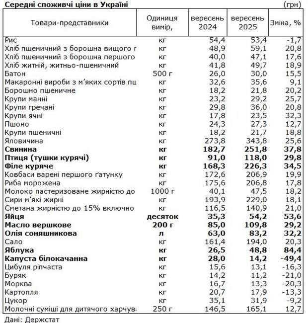 Десяток яиц в сентябре 2025 года стоил в среднем 55 гривен.Цены на свинину поднялись на 38%, куриное филе — почти на 35%, а на тушки курицы — на 30%.