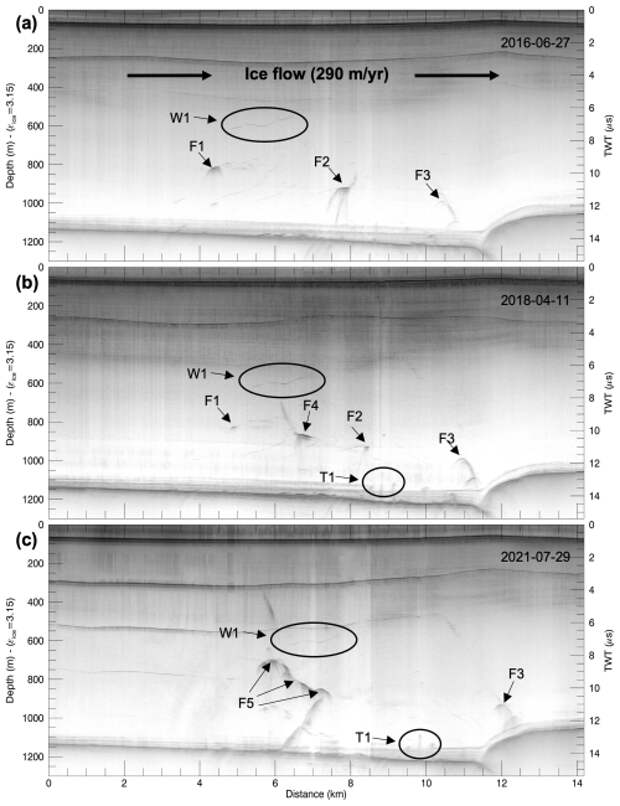 Самое тревожное открытие учёных заключается в том, что эти трещины не исчезают бесследно. Пластичность льда не может полностью «затянуть» столь масштабные разломы. Радиолокационные снимки, просвечивающие ледник насквозь, показали, что система каналов и трещин сохраняется годами. Лёд будто бы «запоминает» путь, по которому уходила вода.