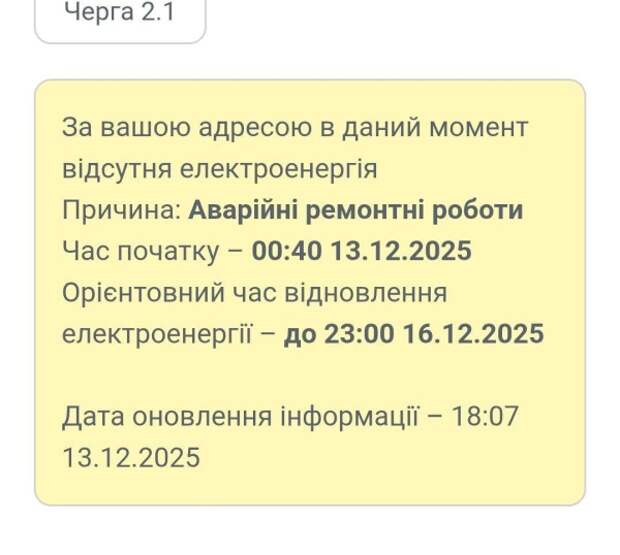 «Пока проходит обследование, результаты будут немного позже, и тогда мы будем понимать, когда будем с теплом, когда будем со светом и водой», — сказал Лысак вечером в субботу, 13 декабря.