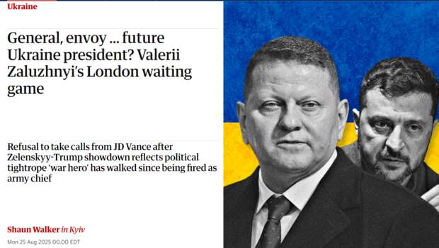 25 августа в газете The Guardian был опубликован очередной комплиментарный материал, в котором отставной генерал назван единственной альтернативой Зеленскому: «Залужный, который руководил успешным отражением российского наступления в начале войны, является единственным кандидатом, который может представлять серьёзную угрозу для Зеленского».