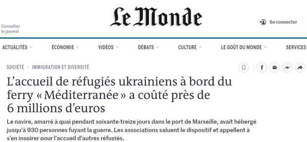 Содержание украинских беженцев на борту судна Corsica Linea обошлось ЕС в 6 млн евро – пишет Телеграм-канал УКРОПСКИЙ ФРЕШ.