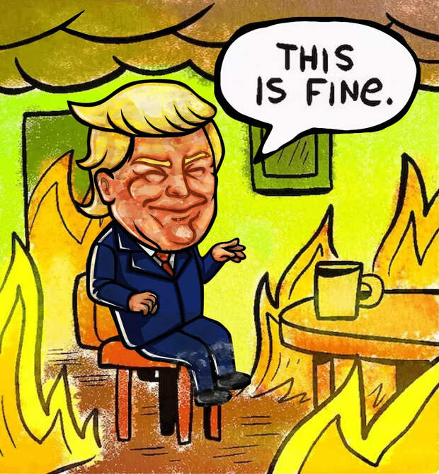 - Вы что, охренели? Наша страна ещё никогда не жила так хорошо, как при Трампе! Он лучший президент в истории _этой страны_. Вы только на индекс Доу Джонса посмотрите! Почему вы ржёте?!