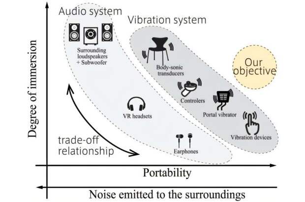 Исследовательская группа из Университета Цукуба (Япония) разработала инновационное устройство, позволяющее физически ощущать низкочастотные басы без создания громкого звука. Новая технология представляет собой портативный сабвуфер, который комбинирует электромиостимуляцию (ЭМС) мышц с низкочастотными вибрациями.