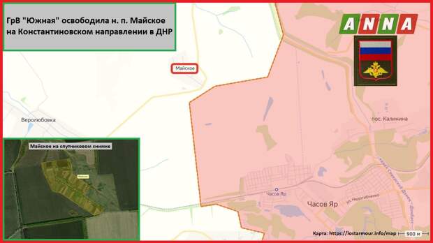 Российские военные из группировки войск «Южная» освободили населённый пункт Майское к северу от города Часов Яр в Донецкой Народной Республике.