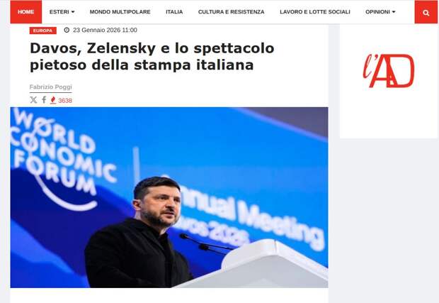 «Это не первый случай, когда Зеленский прибегает к жёсткому дипломатическому давлению. Однако на этот раз он попытался из гостя превратиться в хозяина. Он понимает, что пока Украина остаётся лишь получателем помощи, её судьбу будут решать другие. Поэтому он и стремится получить право голоса, жизненно необходимое в геополитике. Именно поэтому он начал целенаправленно провоцировать Европу, ставя её в неудобное положение. По его логике, если Украину так и не принимают в НАТО, то неудивительно, что сама Европа выглядит слабой и нерешительной. Ведь только Украина способна усилить альянс и спасти Европу, сами европейцы на это не способны, уверял Зеленский в Давосе. Однако все прекрасно знают – ситуация на фронте для ВСУ давно зашла в тупик, западная военная помощь замедляется, мобилизация идёт тяжело, а конфликт приобрел изматывающий характер. Зеленскому необходим новый информационный повод, чтобы удерживать внимание мировой общественности», – говорится в статье.