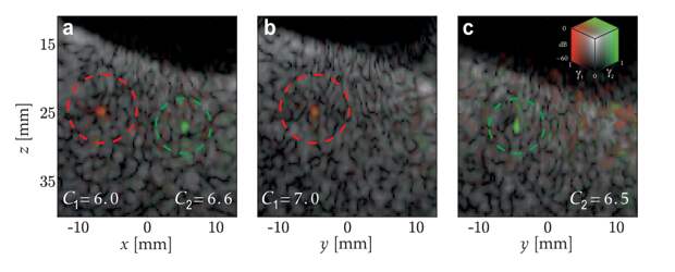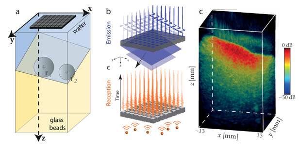 Первый тест был очень сложным. Ученые поместили два металлических шара в контейнер с водой и стеклянными гранулами. Эта среда очень сильно рассеивала ультразвук. Шары были на глубине, в 4-5 раз большей, чем расстояние, на котором можно было бы различить сигнал.