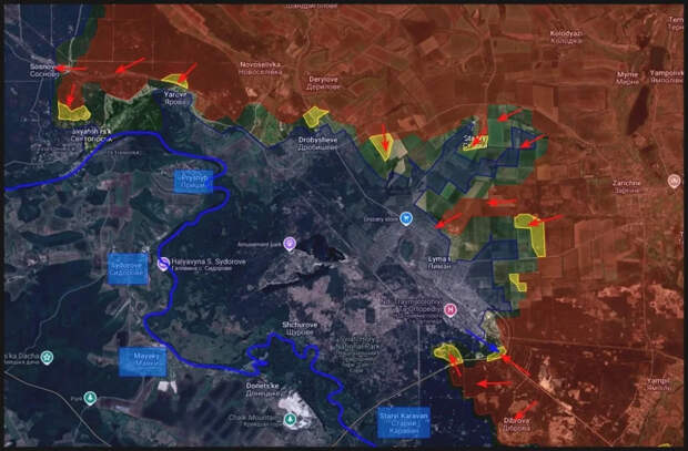Это село, растянувшееся на 7 километров с запада на восток, становится новой точкой напряжения. Российские бойцы уже прошли около километра в жилой застройке, а также добились существенных успехов, заняв господствующие высоты на севере села. Контроль над высотами фактически приговор для гарнизона противника в низинах.