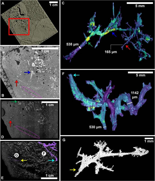 Именно с помощью такого аппарата в Канадском центре синхротронного излучения (CLS) команда ученых «просветила» ребро Скотти. То, что они увидели на полученных 3D-моделях, превзошло все ожидания. Внутри костной ткани, прямо в области зажившего перелома, сохранились микроскопические ветвящиеся структуры.