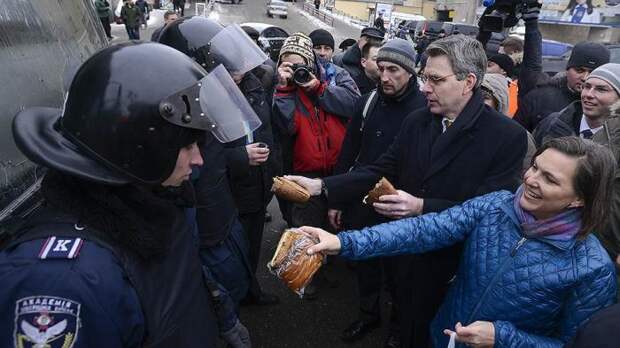 Говорится и о знаменитом разговоре Нуланд с тогдашним послом США на Украине Джеффри Пайеттом, состоявшемся 4 февраля 2014 года, в ходе которого главный куратор Майдана без всякого стеснения раздавала команды, кого можно назначить премьер-министром Украины (Арсений Яценюк), а кого к власти лучше не допускать (Виталий Кличко, Олег Тягнибок).