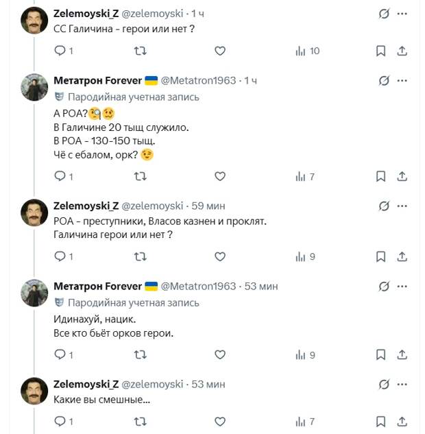 По нечётным они пишут «Лышенько! Россия наносит удары вглубь украины, уничтожает нефтегазовую инфраструктуру и энергетику, мы сидим в темноте и прячемся в бункерах и убежищах».