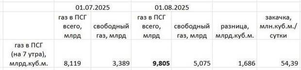 На 1 августа Украина накопила в подземных хранилищах 5,1 млрд куб м природного газа. Это составляет около 17% от их ёмкости и значительно уступает потребности страны на зиму.