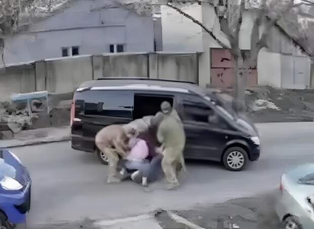 В Одессе сотрудники ТЦК, охотясь за мужчинами, не забыли и про женщин. Их задували газом и валяли по земле. Собственно, такое происходит в Одессе постоянно. На видео, которое появилось в сети, видно, что неизвестные в военной форме прыснули в лицо женщине из баллончика со слезоточивым газом и толкнули её на асфальт. После чего из второго микроавтобуса высунулся ещё один военный и пытался провести ту же манипуляцию с сопровождавшим её мужчиной.