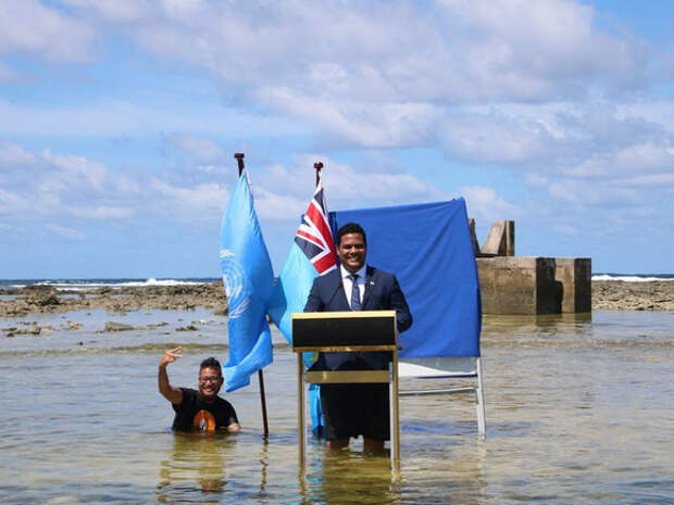 Министр иностранных дел Тувалу выступил с речью на конференции ООН по климату в Глазго, стоя по колено в воде, чтобы напомнить о высоких рисках затопления его островного государства.