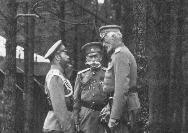 Николай II и Николай Николаевич Младший, посередине – граф В.Б. Фредерикс